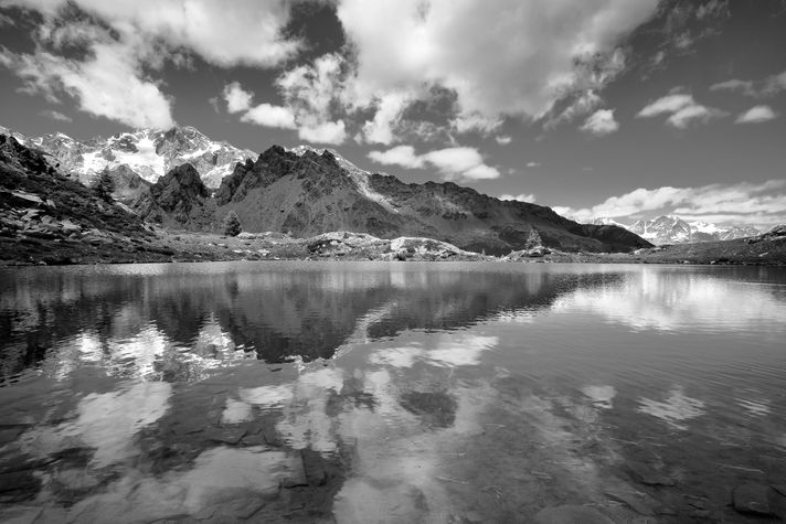 La decisione diventa quindi quella di scattare in alta quota: pareti strapiombanti di roccia, ghiaccio, vento, freddo e nuvole che nascondono vette misteriose, dove l'uomo, quando presente, è relegato a ruolo di comparsa, di piccolo ospite, in un mondo
